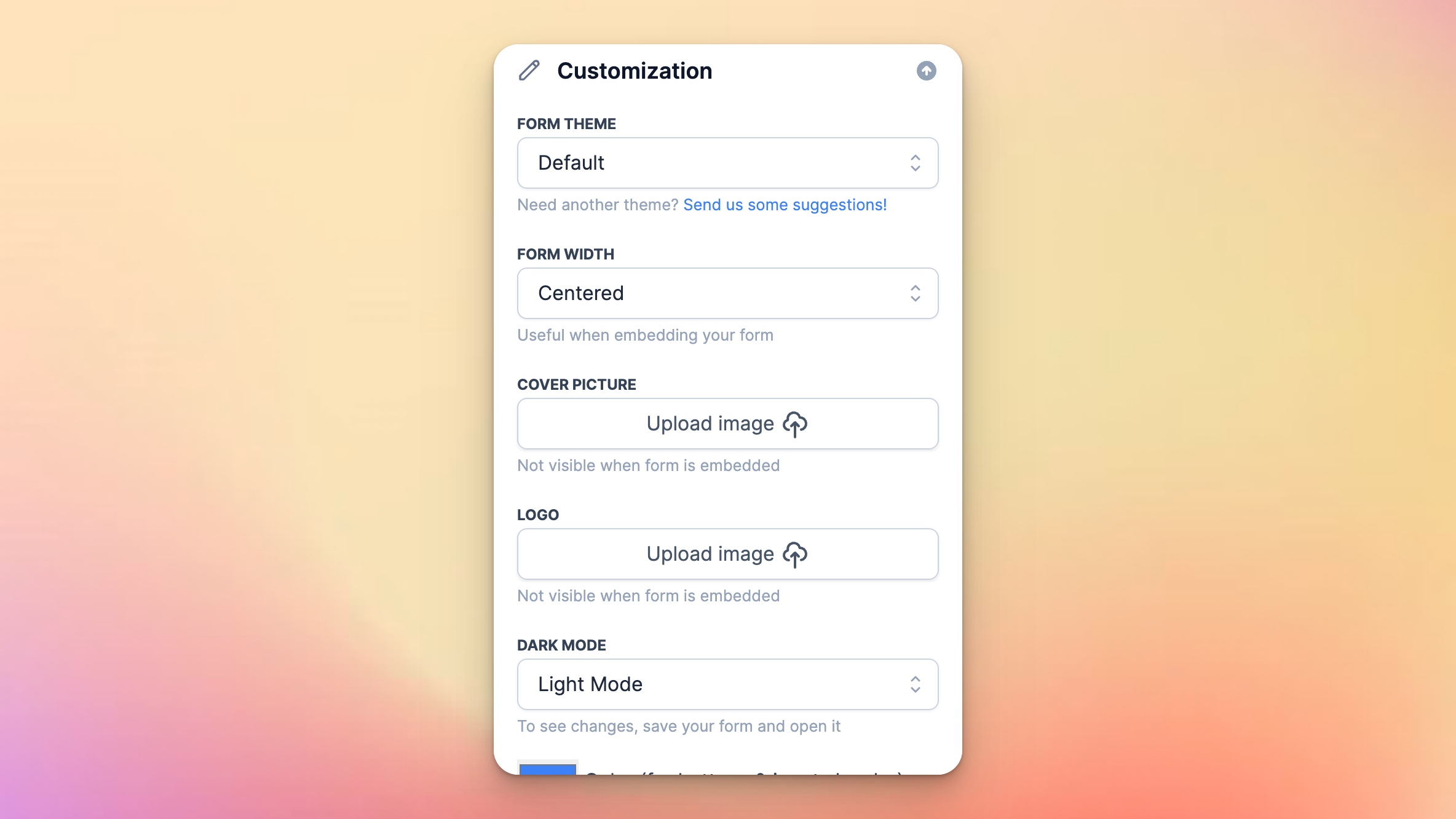 You can also choose to add a 'Re-fill' button to allow respondents to take the form again, or redirect to a specific URL on form submission.